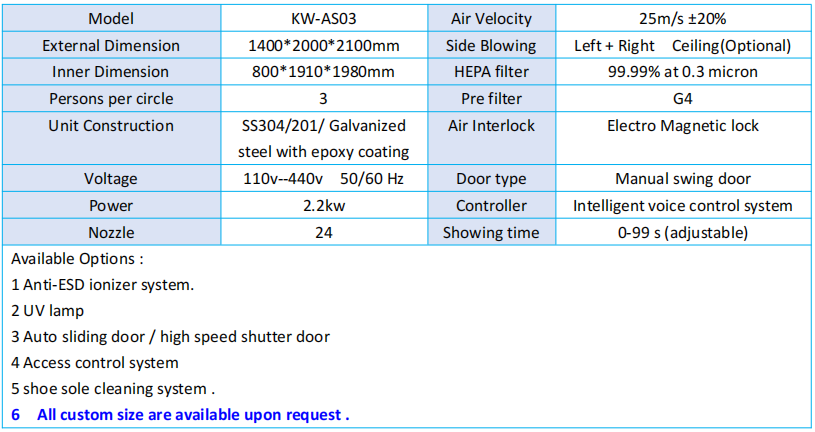 Clean room air shower is a necessary air clean facility , it is used to remove the dust particles attached to the surface of the human body or the carry items that will go into the purification workshop while the air shower room also plays the role of airlock buffer, to prevent unpurified air into the clean area, is the effective air purification equipment for human body purification and to prevent air pollution outside the clean area.